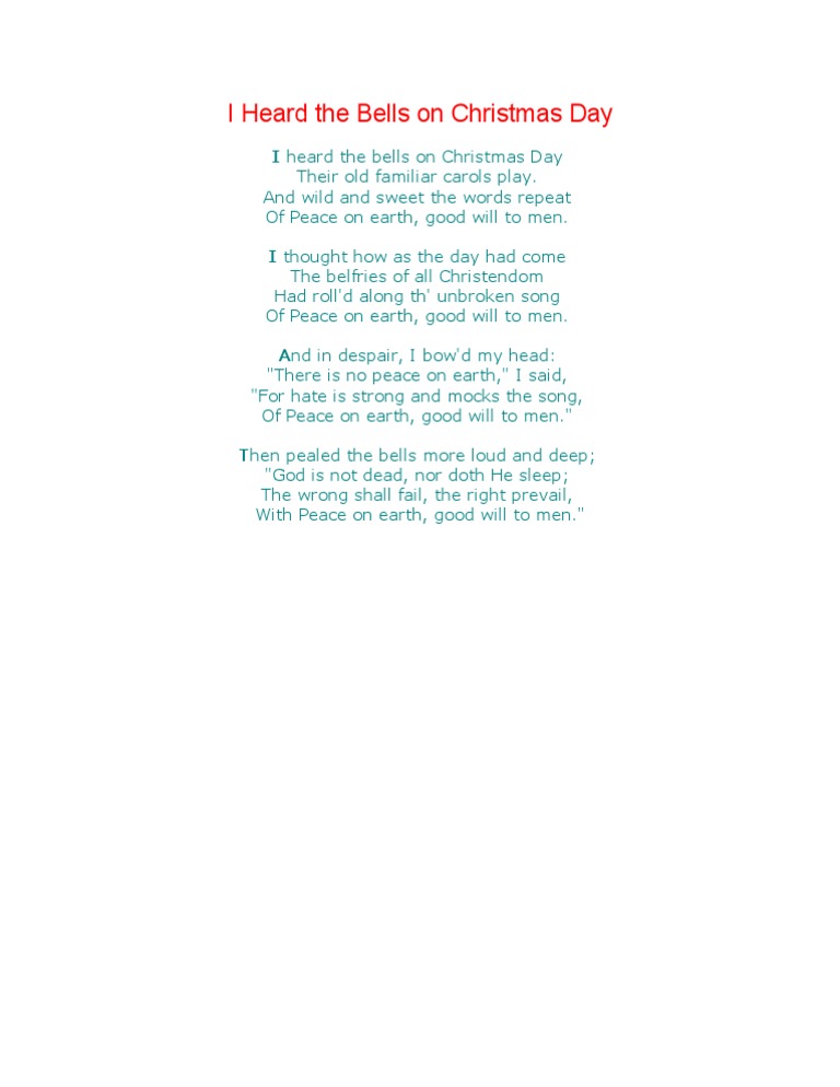 I heard the bells on christmas day peace on earth Indeed lately has been sought by users around us, maybe one of you personally. People are now accustomed to using the internet in gadgets to view video and image data for inspiration, and according to the name of this article I will discuss about I Heard The Bells On Christmas Day Peace On Earth.